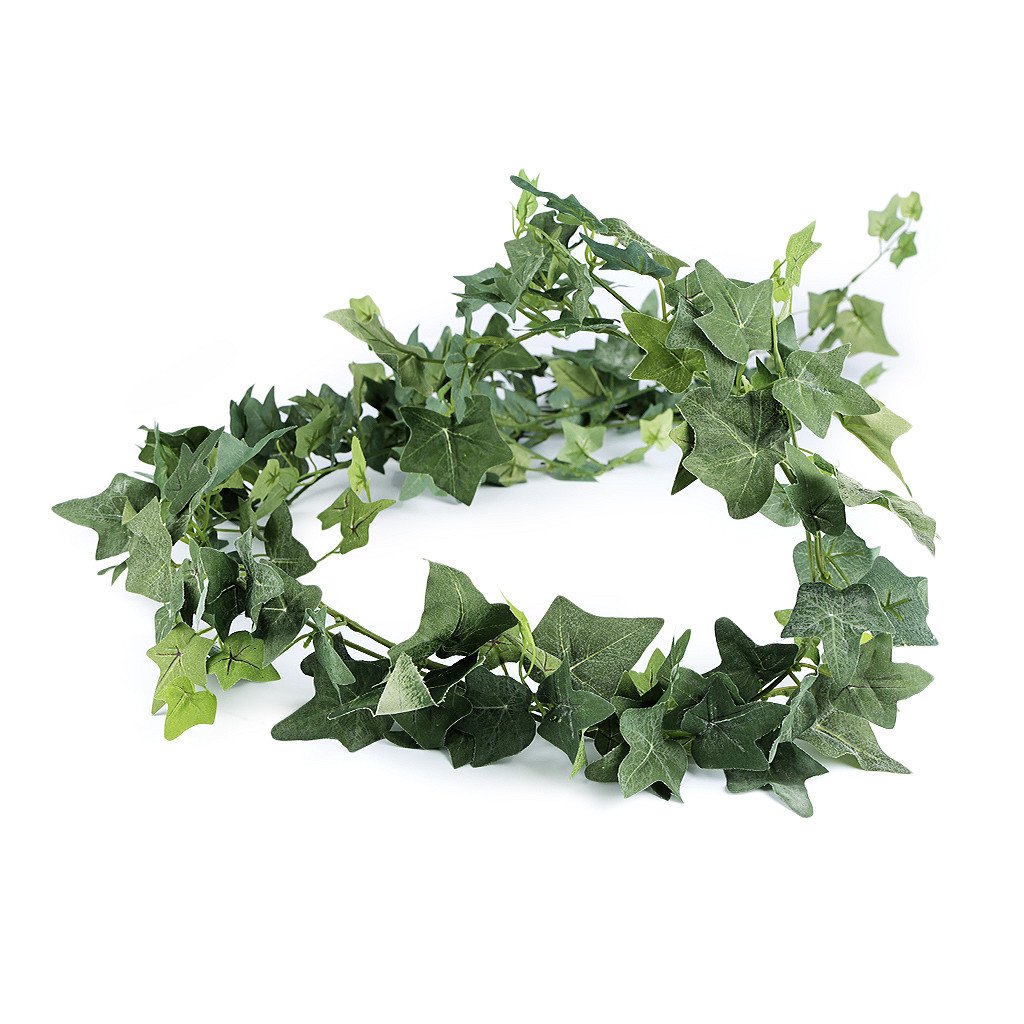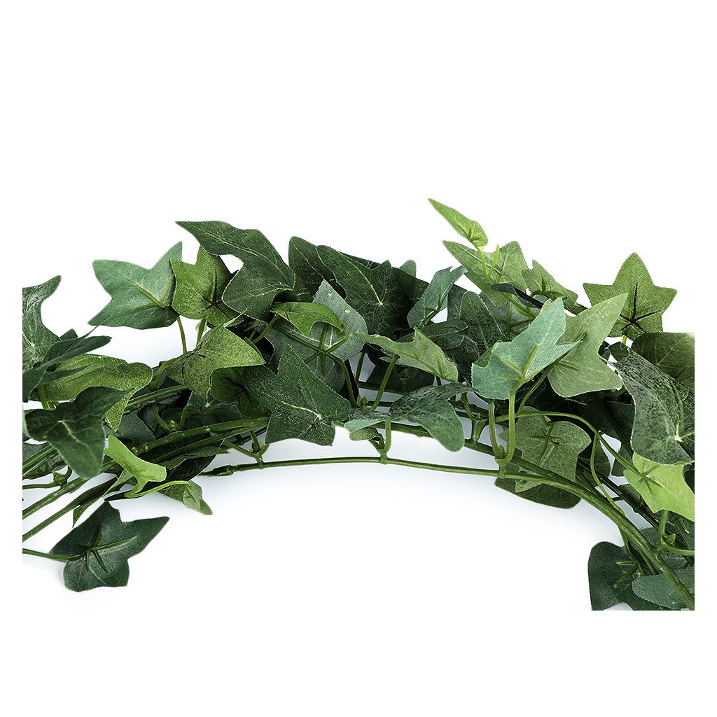Umělá girlanda z břečťanu se díky drátu dobře tvaruje. Je bohatě pokrytá lístečky. Břečťan využijete k ozdobení věnců, svatební tabule, židlí i slavobrány u obřadu.