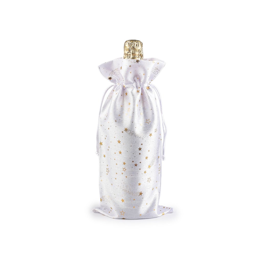 Vánoční dárkový pytlík ozdobený zlatým metalickým potiskem hvězdiček působí elegantně a luxusně. Je určený na zabalení lahví a jiných podlouhlých dárků. Pytlík je dostatečně vysoký, ať už se rozhodnete pro dárek s alkoholem nebo s domácí limonádou, ušetří vám čas při balení. Stahuje se pomocí kulatých saténových šňůrek, dárku dodá osobní kouzlo a půvab.