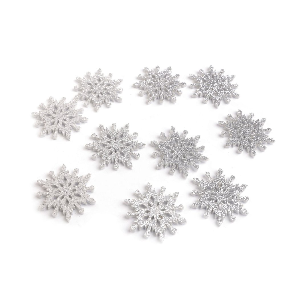 Filcové vločky zdobí z jedné strany třpytivé glitry. Můžete je nalepit na adventní věnce, truhlíky, jmenovky na slavnostní tabuli, dárky a různé vánoční dekorace.