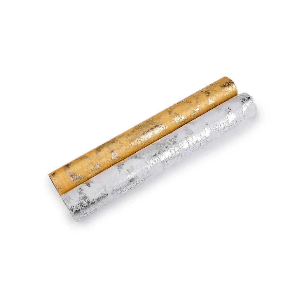 Dekorační organza působí jemně a zároveň elegantně. Zdobí ji metalický potisk hvězd, který je jednostranný. Hodí se ke slavnostním příležitostem.