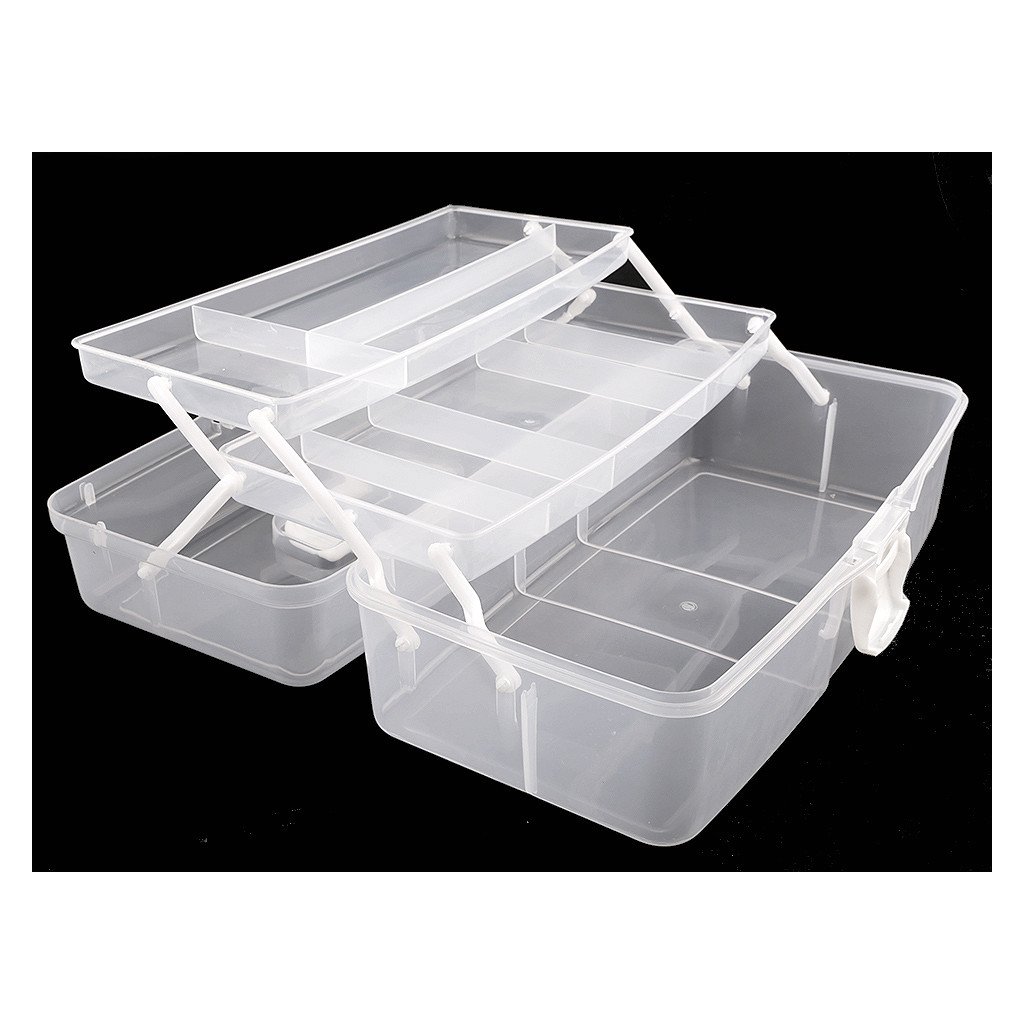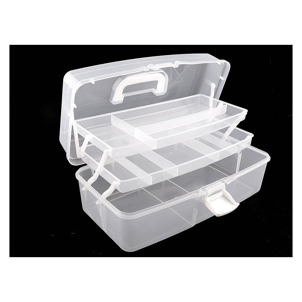 Velký rozkládací zásobník je praktický pomocník při skladování všelijakých komponentů pro kreativní tvorbu. Je průhledný, má jednoduché pákové uzavírání a rukojeť na pohodlné přenášení. Je vhodný i pro švadleny, které ocení, že je dovnitř vidět.