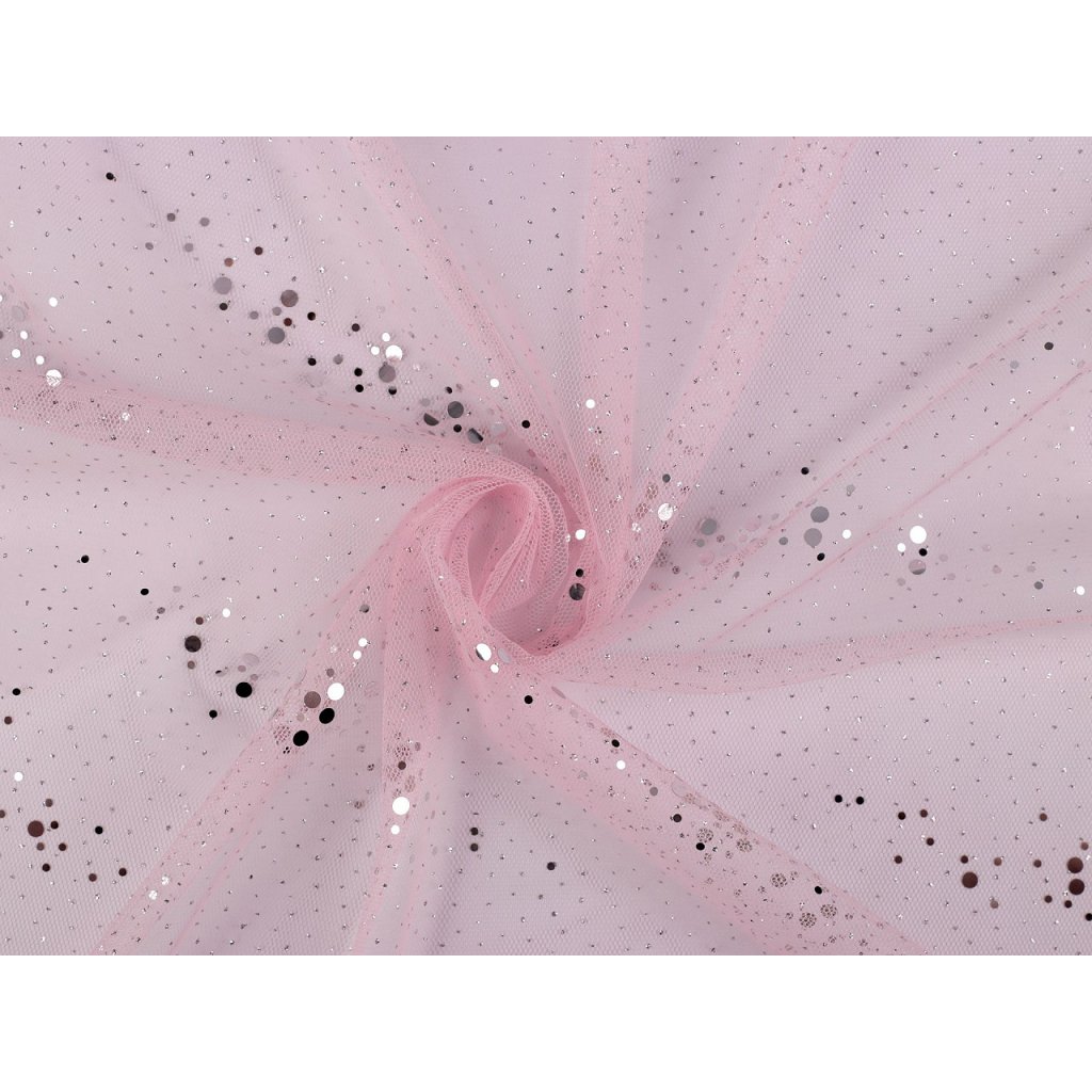 Tyl zdobí lesklé flitry, které z něj neopadávají. Je jemný, krásně splývá. Využijete ho na karnevalové kostýmy, šití sukní apod. Je vhodný také na různá aranžmá.Pruží po šíři.