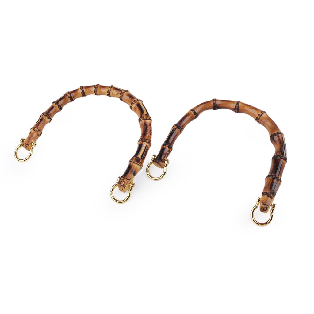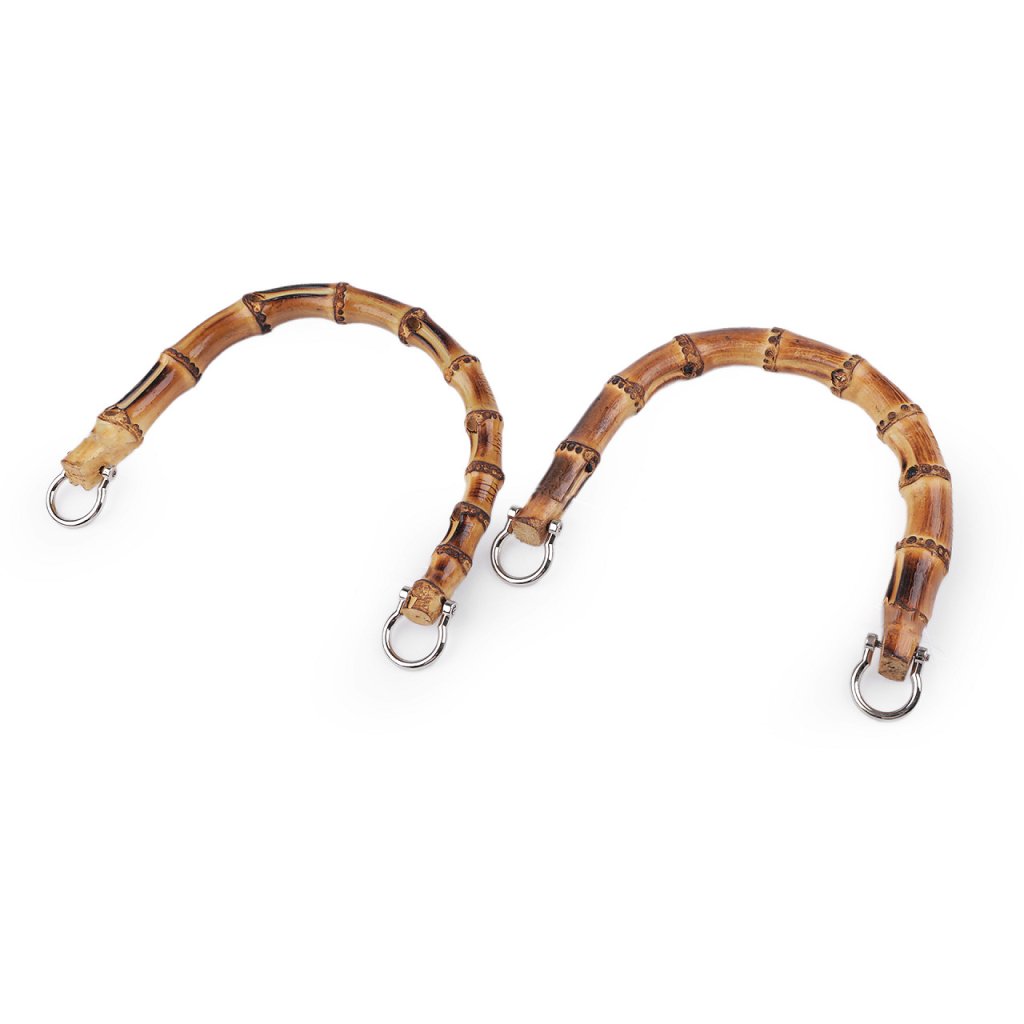 Přírodní bambusová ucha využijete na kabelky i tašky. Na obou koncích mají kovové polokroužky, díky kterým je jednodušeji připevníte na hotovou tašku.
