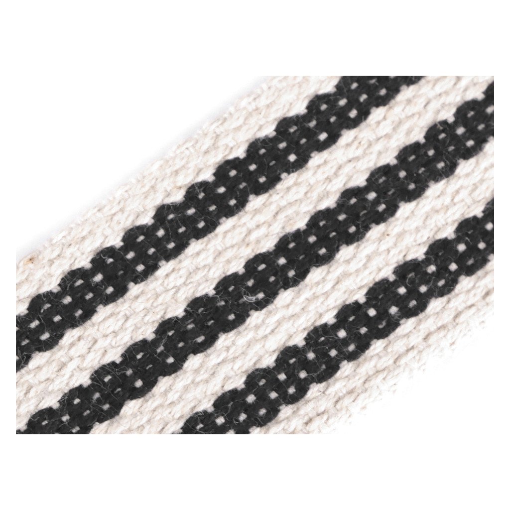 Pevný popruh je vhodný jako ucho na batohy či tašky. Můžete ho použít také na výplety nábytku, lehátek, saní, lemování textilních výrobků atd. Hodí se i na výrobu opasků.