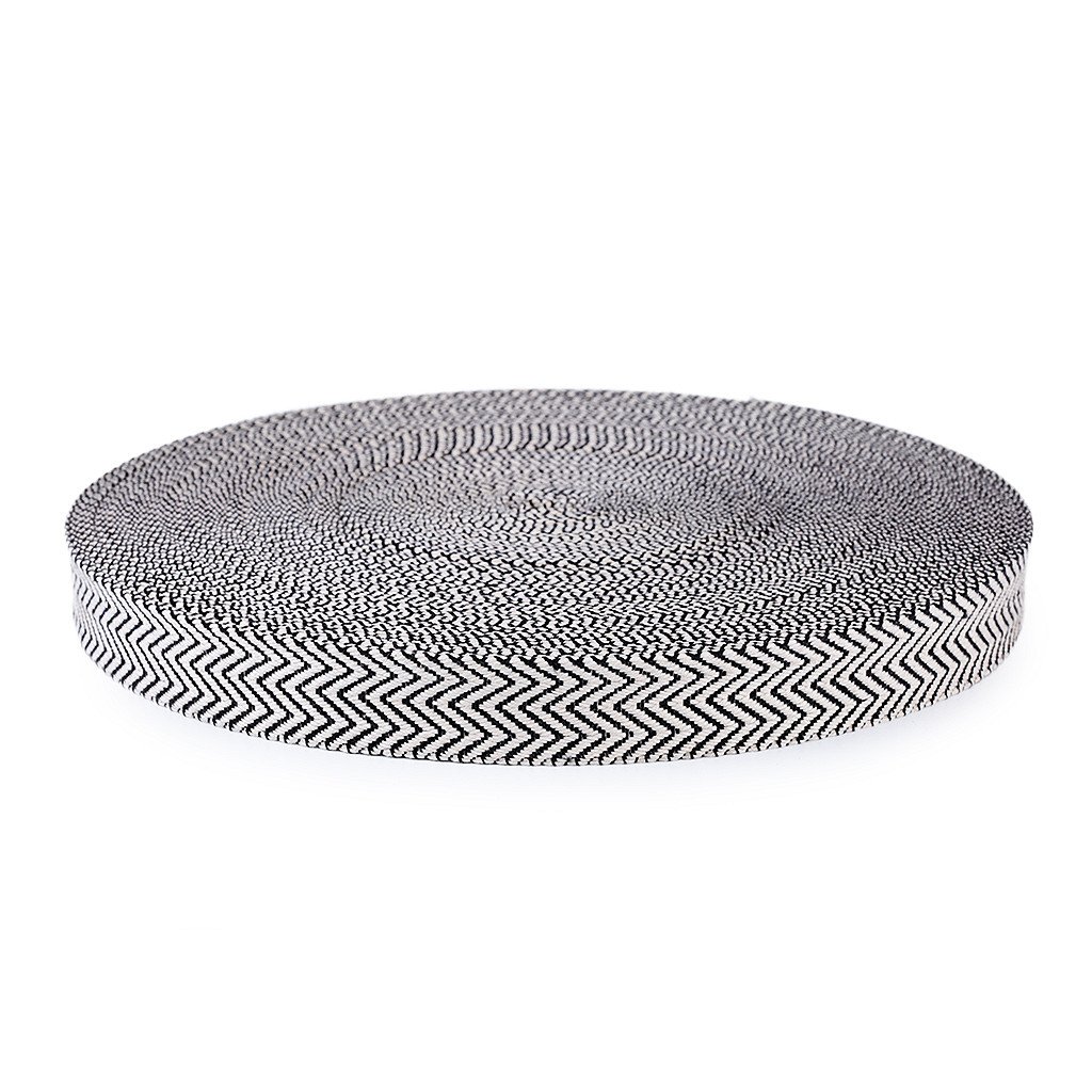 Pevný designový popruh je vhodný jako ucho na batohy či tašky. Můžete ho použít také na výplety nábytku, lehátek, saní, lemování textilních výrobků atd. Je vhodný i na výrobu opasků.