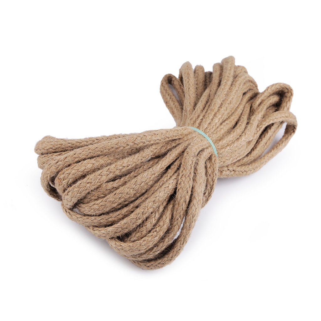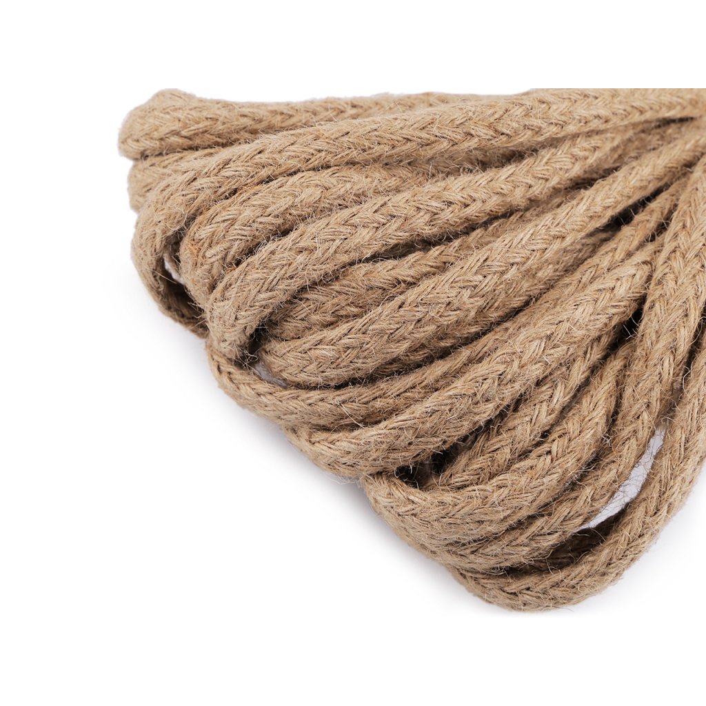 Splétaná jutová šňůra je pevná. Využijete ji jako ucha na tašky, výrobu různých dekorací či ke zdobení bytových doplňků.