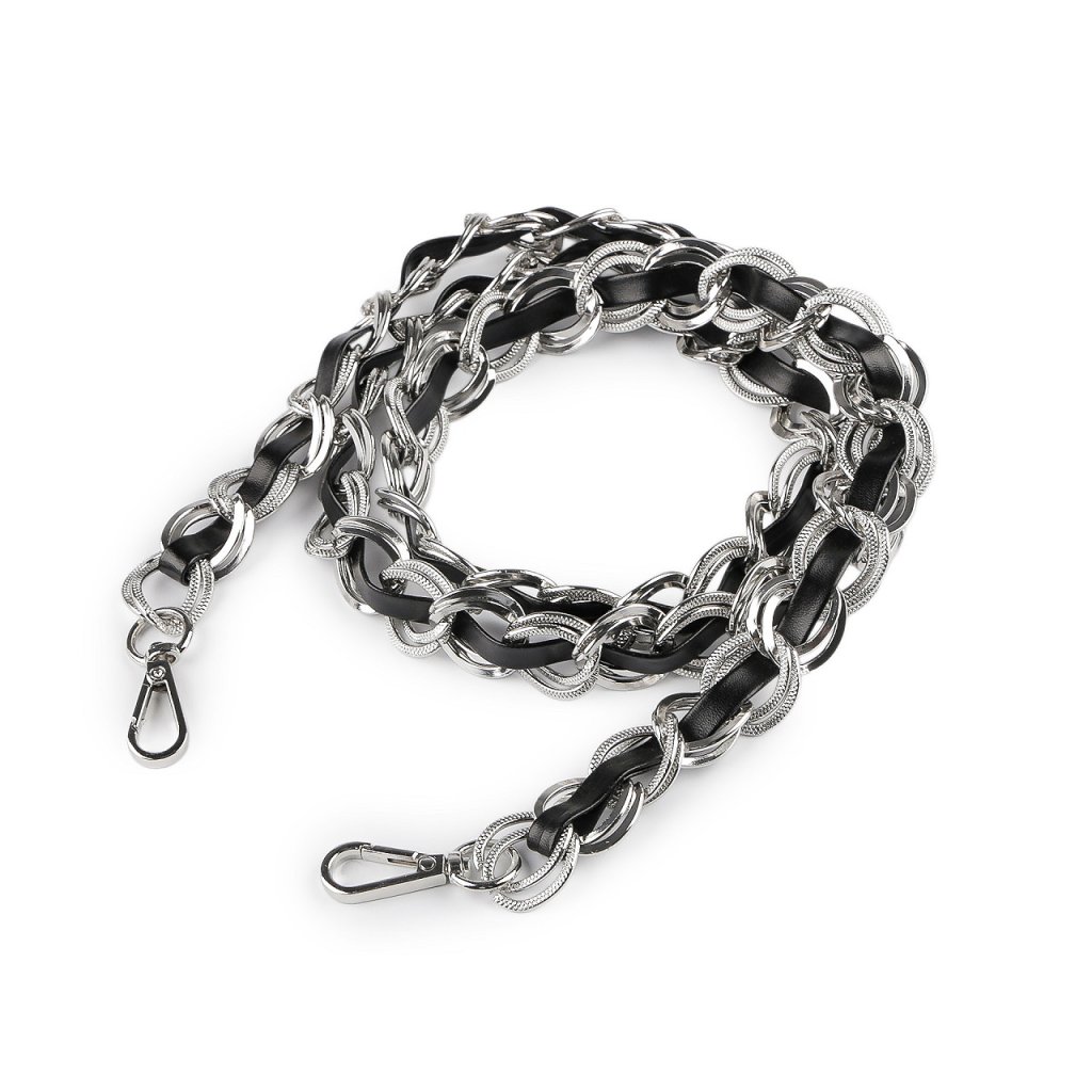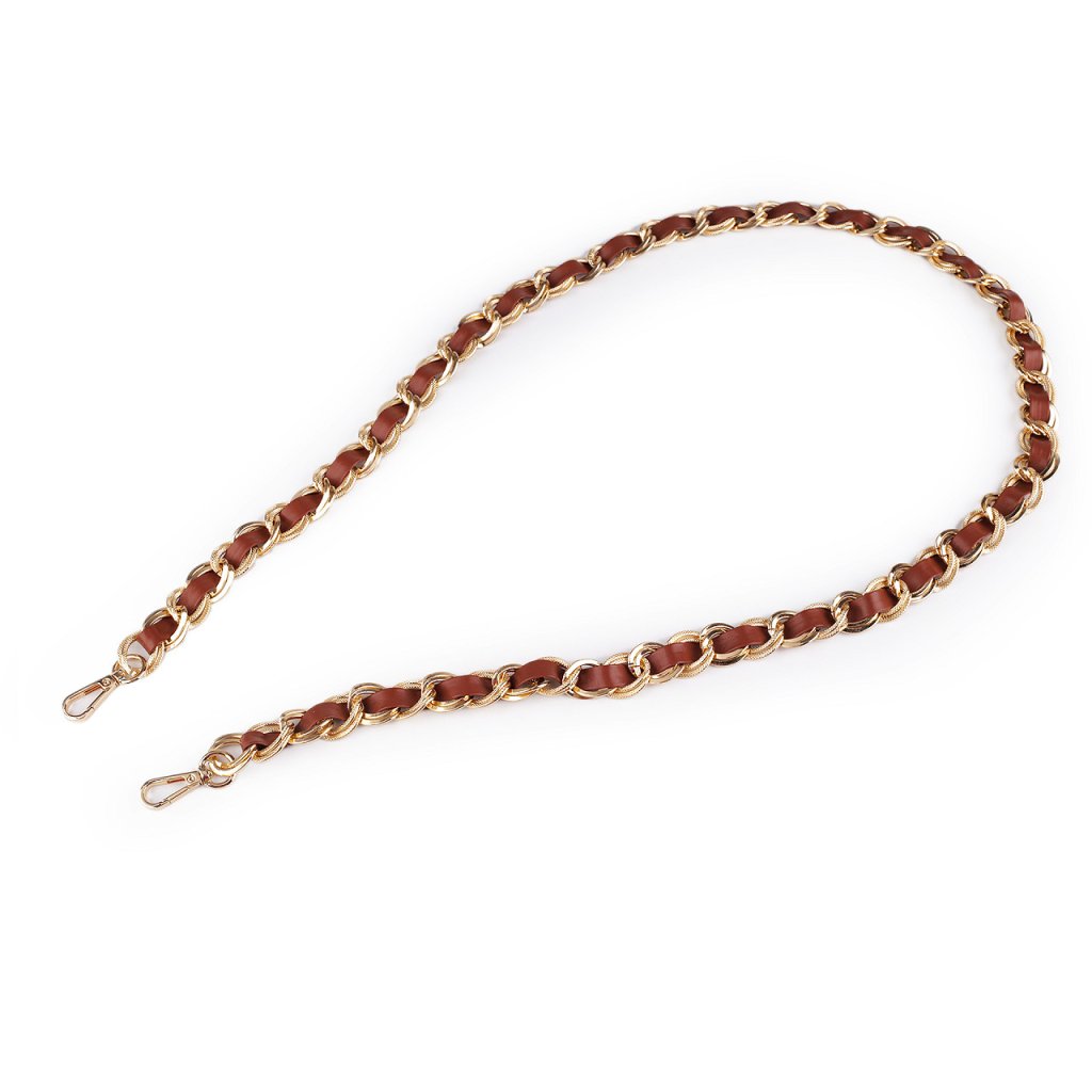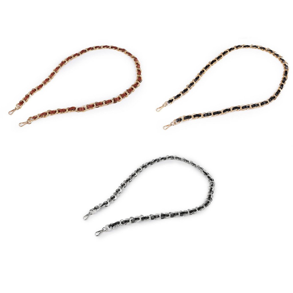 Koženkový popruh je elegantně propletený kovovým řetízkem. Oba jeho konce jsou zakončené karabinkami, takže ho ke kabelce lehce připnete. Můžete ho použít i na mobil.