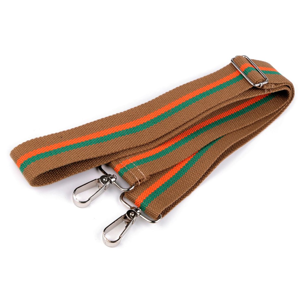 Textilní popruh má z každé strany kovovou karabinu, takže ho ke kabelce či tašce lehce připnete. Délku můžete regulovat.