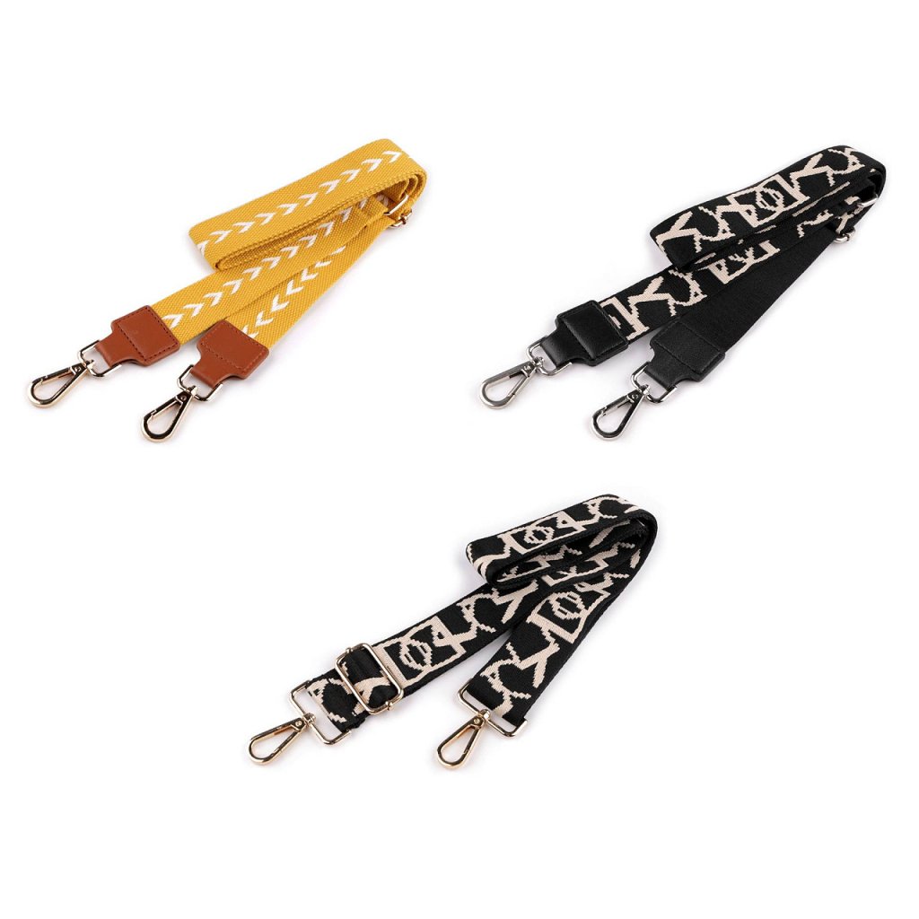 Stylový textilní popruh oživí vaši tašku či kabelku. Na každé straně má kovovou karabinu, takže ho lehce připnete. Jeho nastavitelná délka vám umožní nosit tašku pohodlně přes rameno nebo jako crossbody.