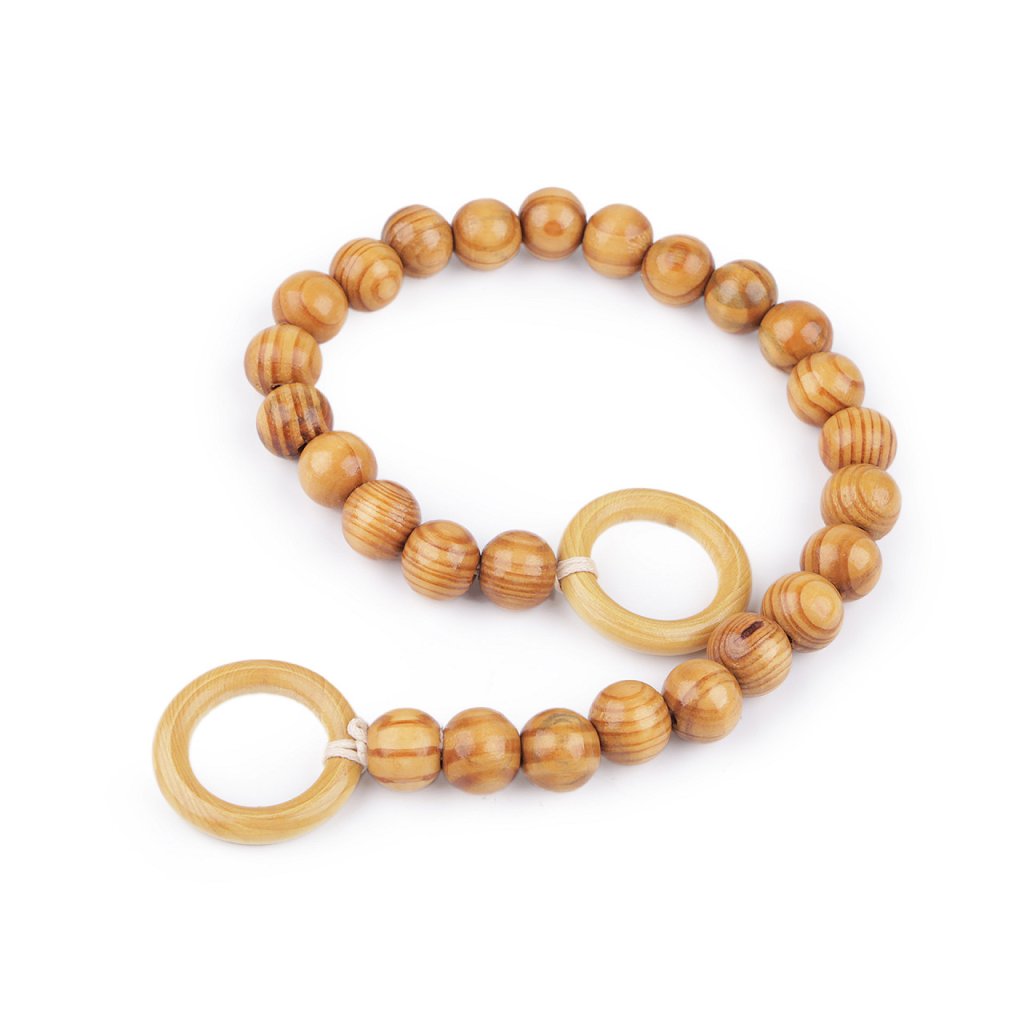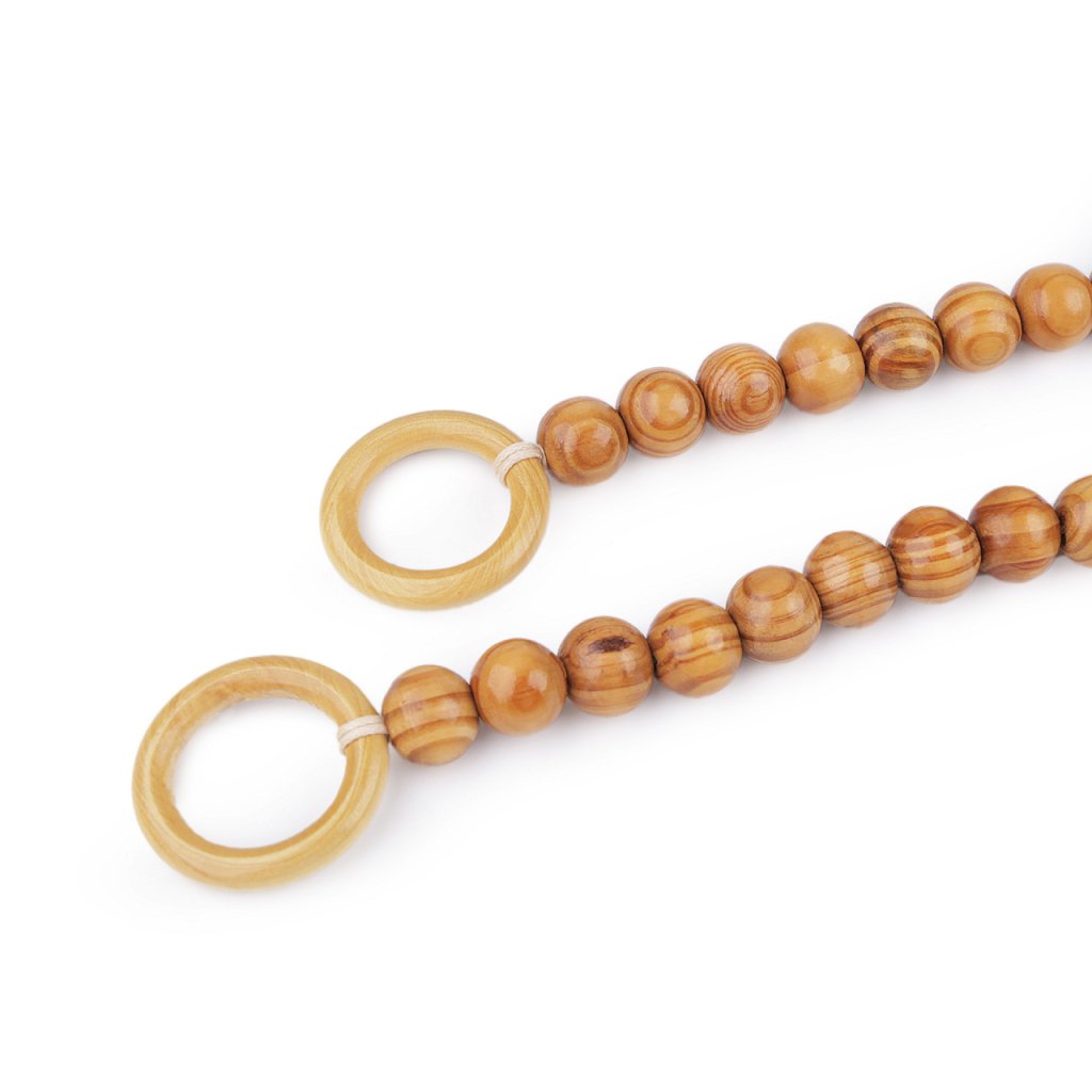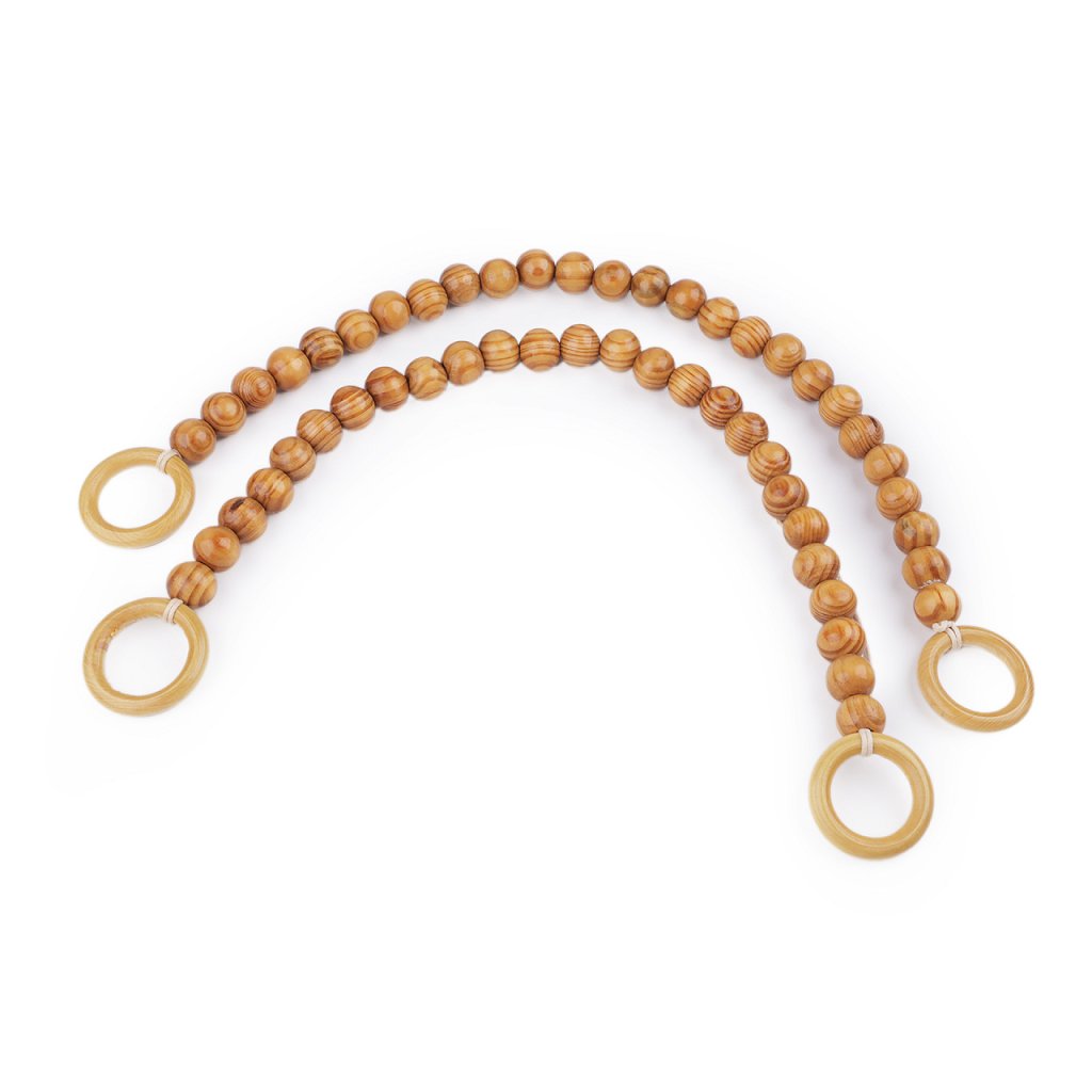 Ucha z dřevěných korálků vyniknou na taškách a kabelkách v bohémském stylu. Korálky jsou lesklé, lakované. Oba konce uch jsou zakončené dřevěnými kroužky.
