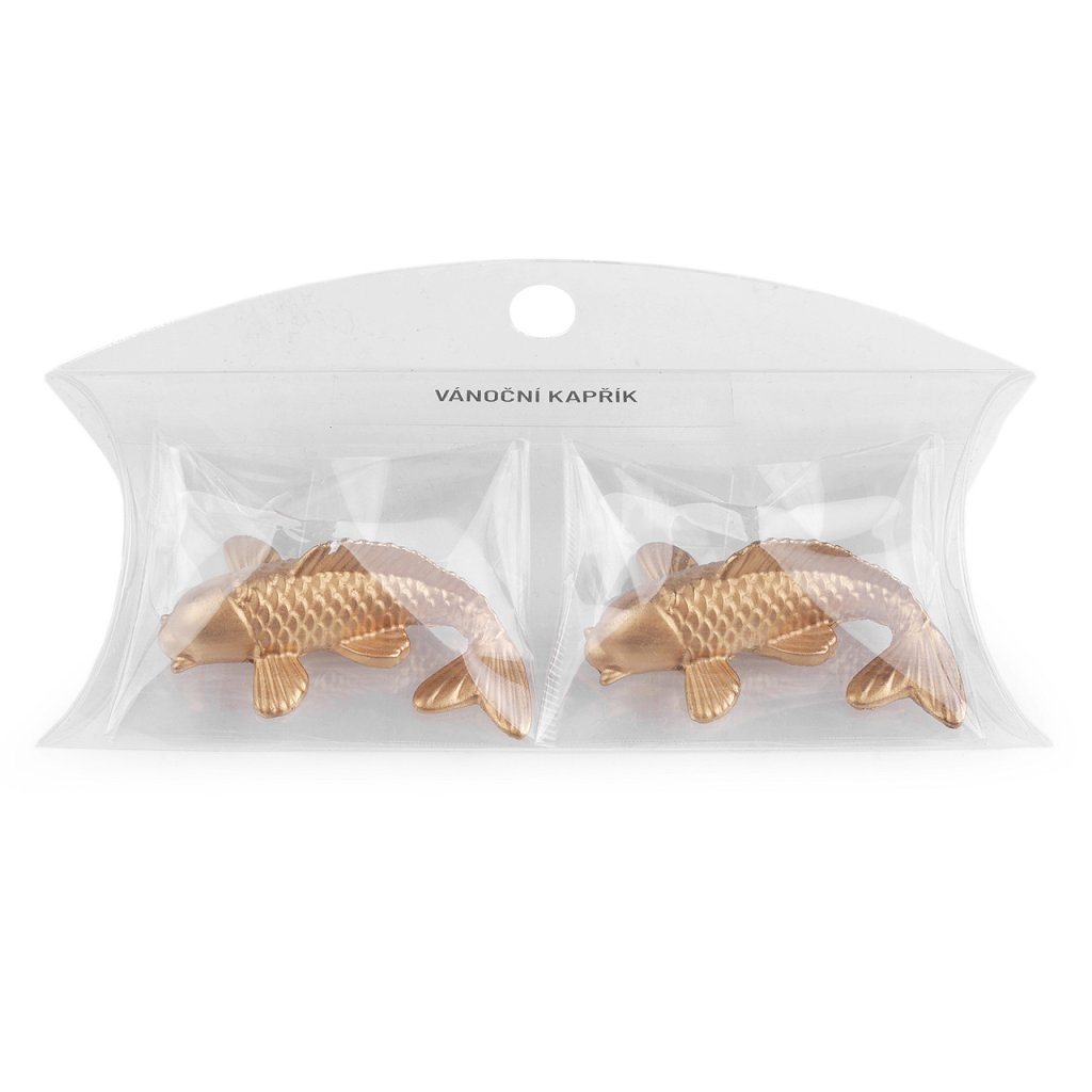 Malý kapřík je zajímavou vánoční i svatební dekorací. Vynikne na tematických rybářských svatbách nebo večírcích. Elegantně ozdobí sváteční tabuli, ale můžete ho také nalepit na věnce, krabičky či ho zakomponovat do vánočního aranžmá. Poslouží i jako milý dárek pro štěstí.
