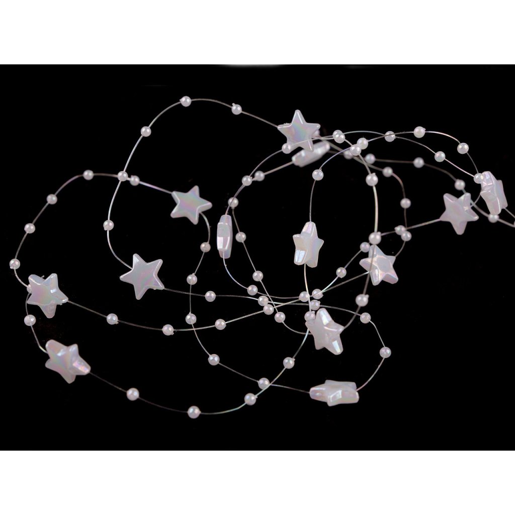 Dekorační perličky s hvězdičkami na silonu využijete jako ozdobný řetěz na věnce, kytice, slavnostní tabule, atd.