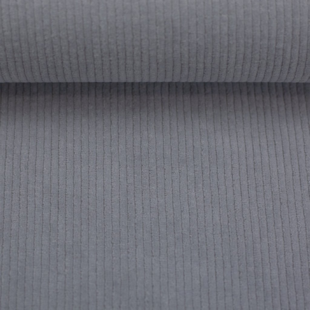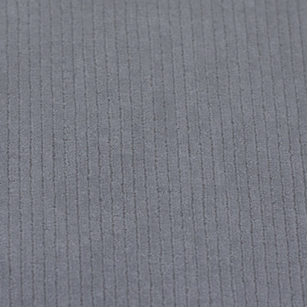 Tato světle šedá látka kombinuje krásu manšestru s pružností úpletu — vytváří tzv. velurový úplet s manšestrovým vzhledem. Při bližším zkoumání vypadá jako manšestr: jemné podélné žebrování či texturovaný chloupek, který dodává hloubku, strukturu a jemný lesk.