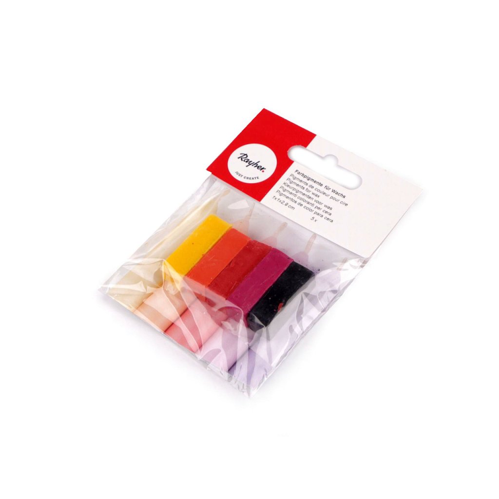 Barevné pigmenty jsou vhodné pro namáčení svíček nebo barvení svíčkovým voskem. V závislosti na množství přidaných barevných pigmentů lze sledovat výsledek barvení (jedna tyčinka barevného pigmentu vystačí na cca 500 g vosku). Pigmenty lze vzájemně míchat a jsou světlostálé. Barevné svíčky mohou být milým dárkem pro vaše blízké, můžete je i zdobit pro speciální příležitosti, jako jsou svatby nebo narozeniny.