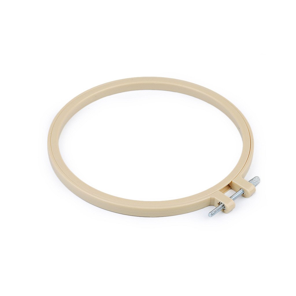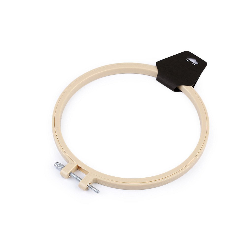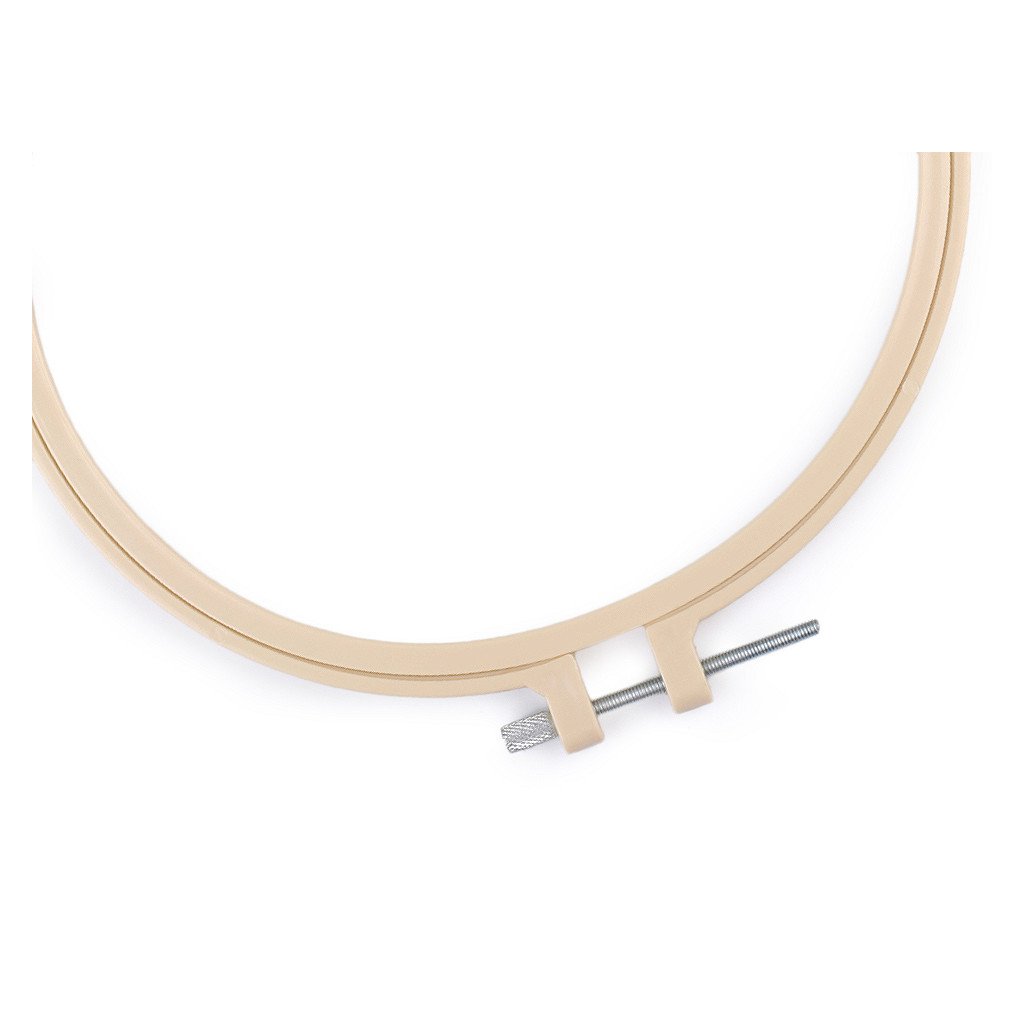 Vyšívací plastový kruh je pevný, opatřený kovovým stahovacím šroubkem, pomocí něhož přichytnete vyšívací tkaninu. Kromě vyšívání ho můžete použít také na aranžování nebo výrobu lapačů snů.