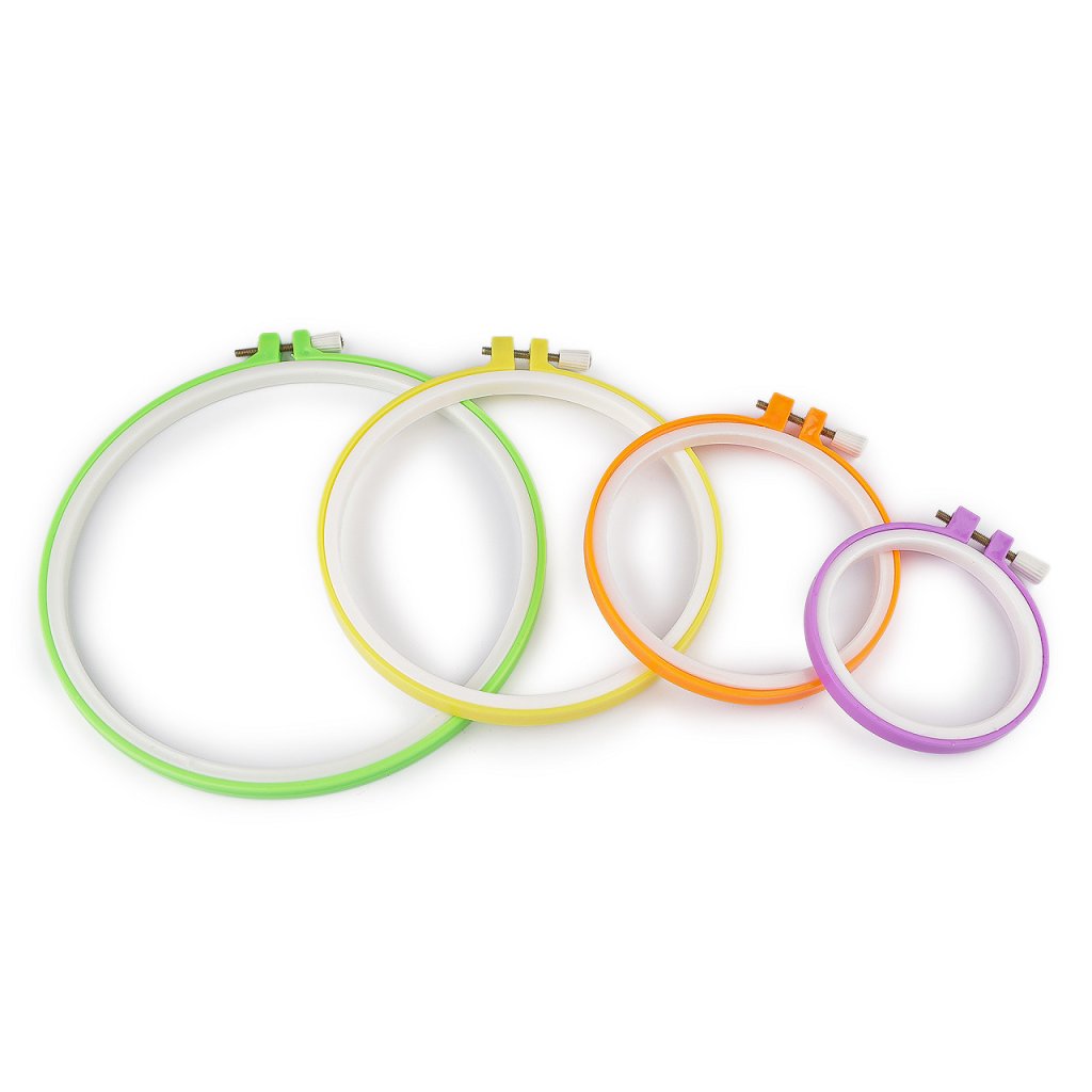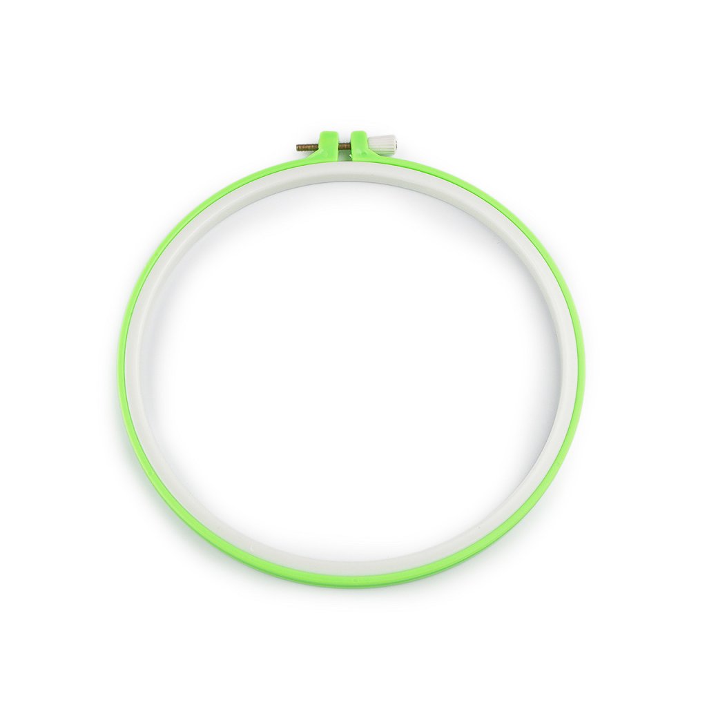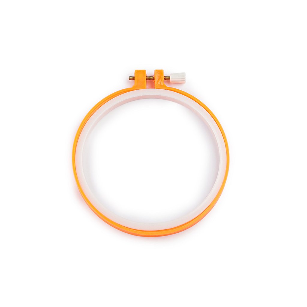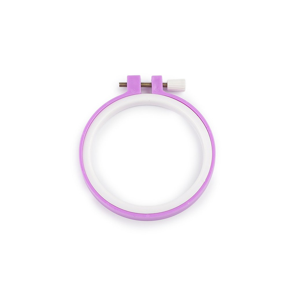 Plastový vyšívací kruh je opatřený kovovým stahovacím šroubkem, pomocí něhož přichytnete vyšívací tkaninu.