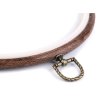Vyšívací kruh je vyrobený z pryže, která imituje dřevo, a plastu. Je opatřen kovovým šroubkem, pomocí něhož můžete kruh pověsit na stěnu.