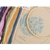 V sadě najdete tkaninu s předlohou, sadu barevných přízí, obrázkový návod, vyšívací jehly a bambusový kruh, který vám poslouží rovněž jako rámeček pro hotový obrázek.