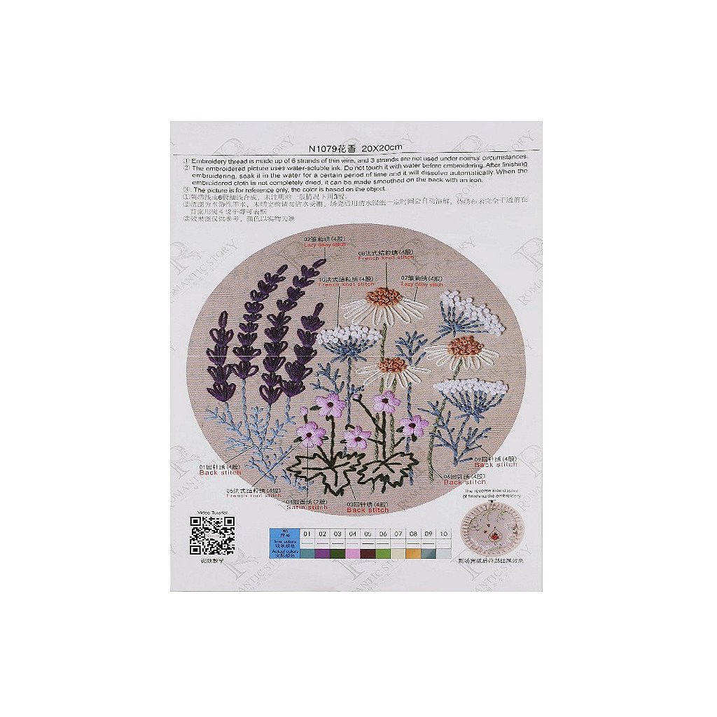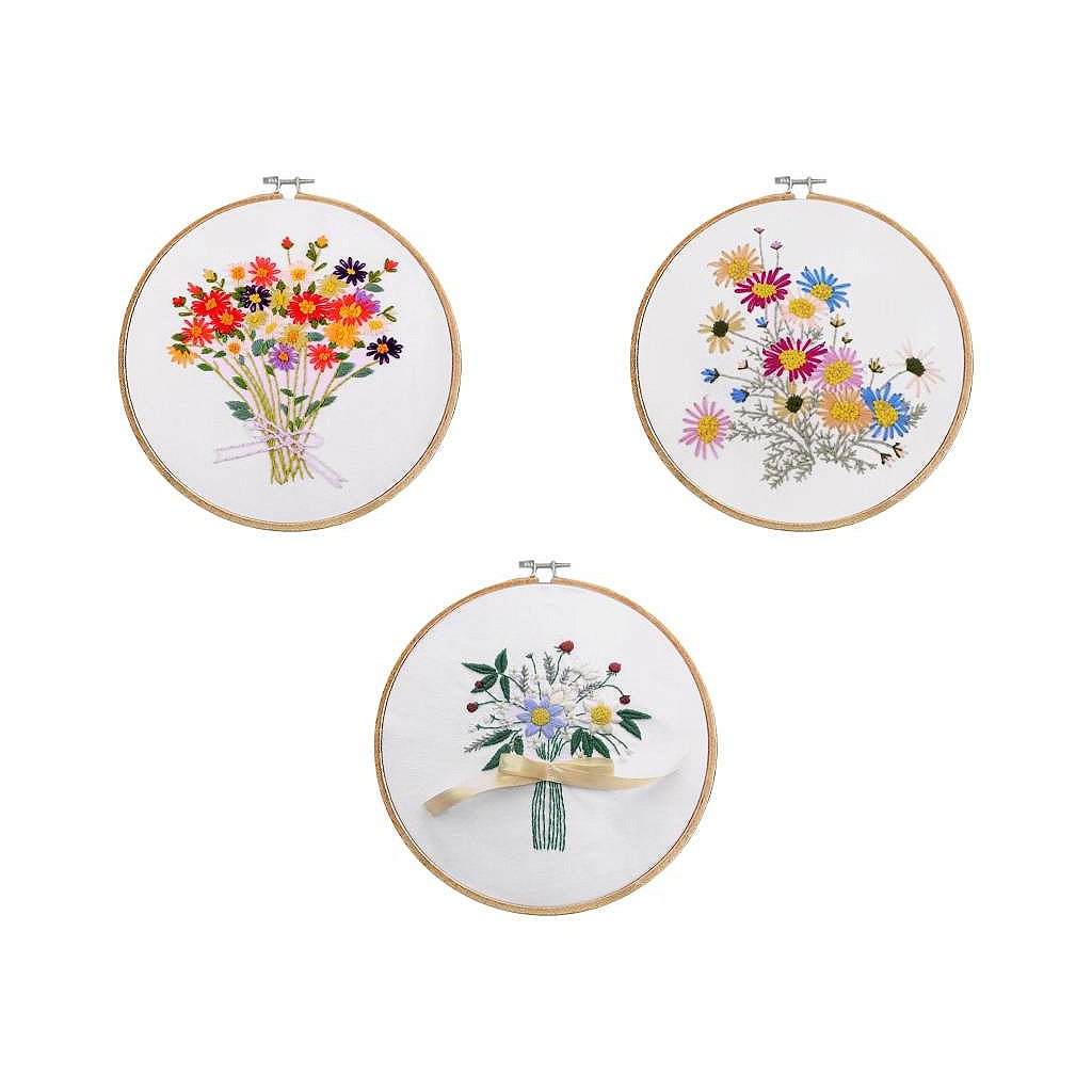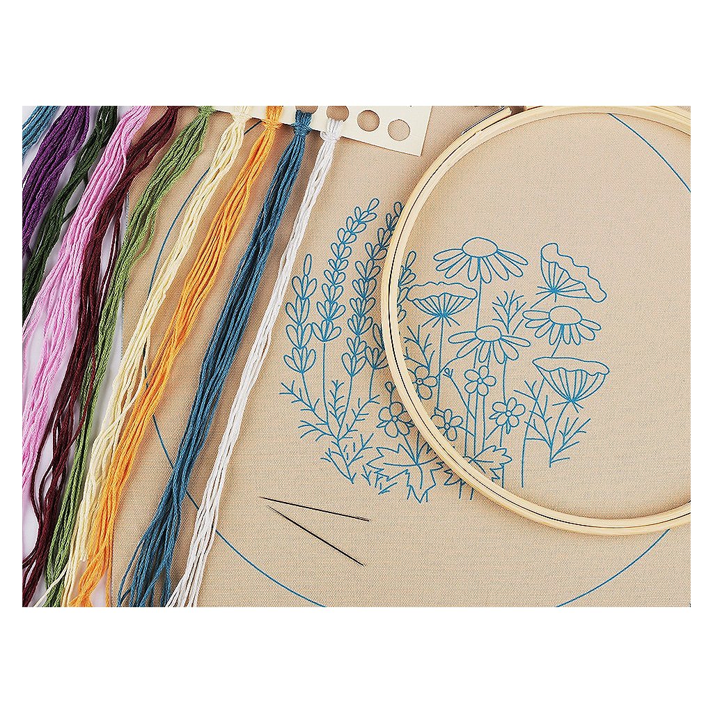 V sadě najdete tkaninu s předlohou, sadu barevných přízí, obrázkový návod, vyšívací jehly a bambusový kruh, který vám poslouží rovněž jako rámeček pro hotový obrázek.