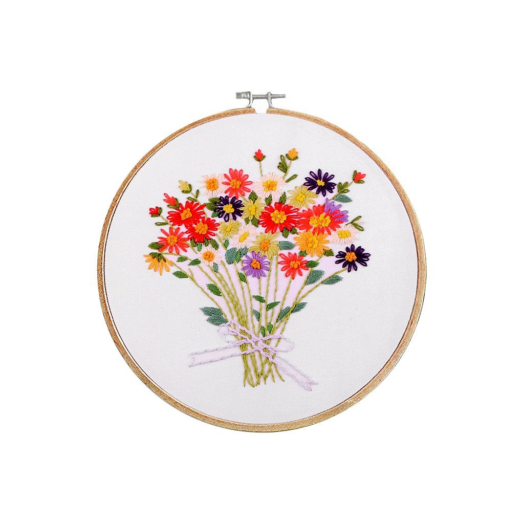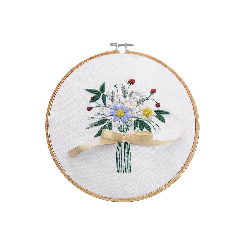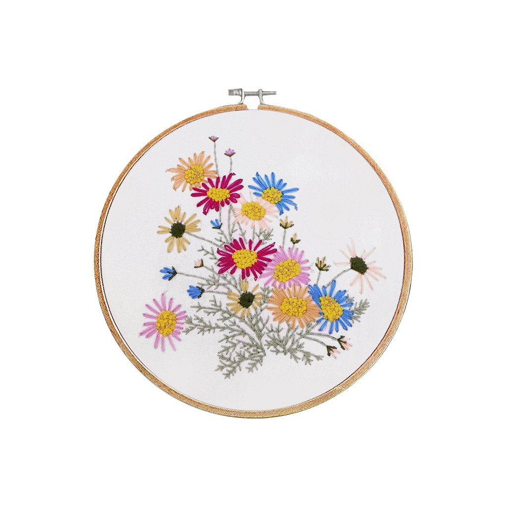 V sadě najdete tkaninu s předlohou, sadu barevných přízí, obrázkový návod, vyšívací jehly a bambusový kruh, který vám poslouží rovněž jako rámeček pro hotový obrázek.