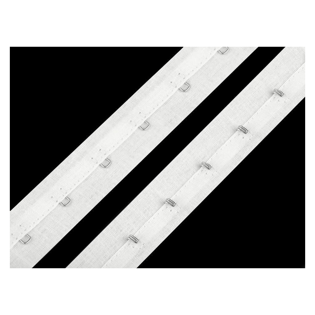 Korzetové zapínání je užitečný pomocník v textilní galanterii. Na kvalitním popruhu jsou pevně připevněny háčky. Balení obsahuje dvě cívky, které obsahují háčky a protikusy (vyrobeny z oceli odolávající praní).