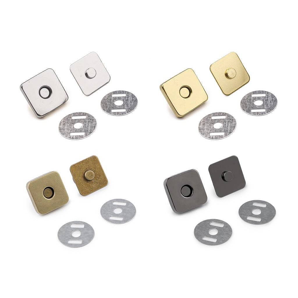 Magnetické zapínání je velmi oblíbené. Má čtvercový tvar. Zapínání se používá na uzavírání tašek, peněženek nebo kabelek.