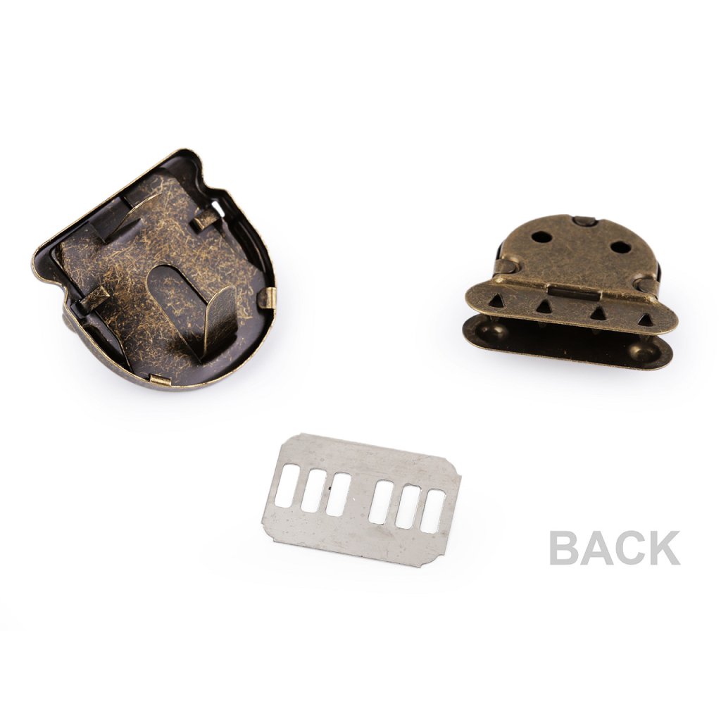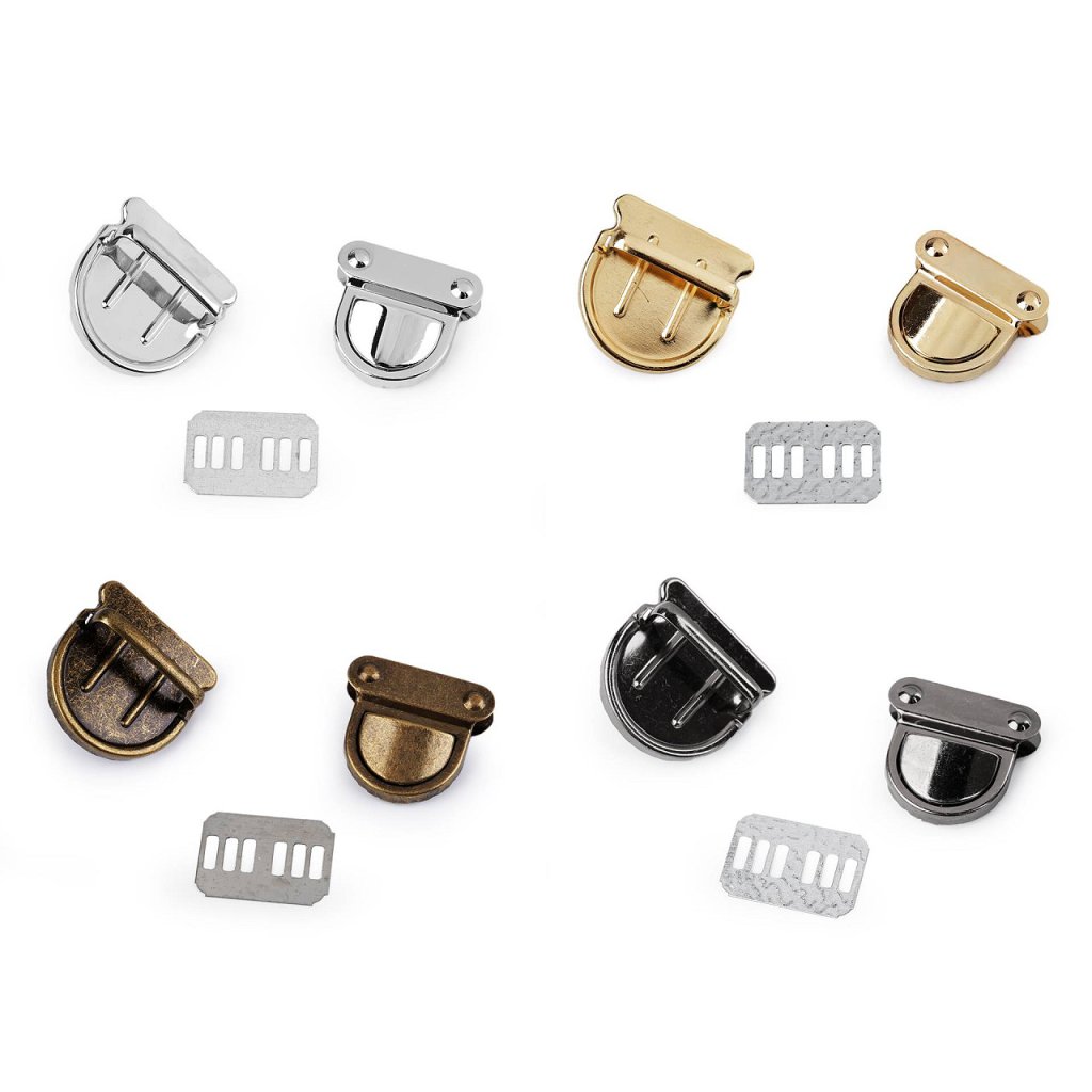 Zapínání na kabelku či tašku se skládá ze tří dílů. Díl s nožičkami se připevní na vnější část kabelky, plíšek z druhé strany na vnitřní část a třetí díl pomocí zoubků na její chlopeň. Pak už jen stačí zasunout do sebe tak, až uslyšíte cvaknutí. Potom je teprve kabelka bezpečně uzavřena.