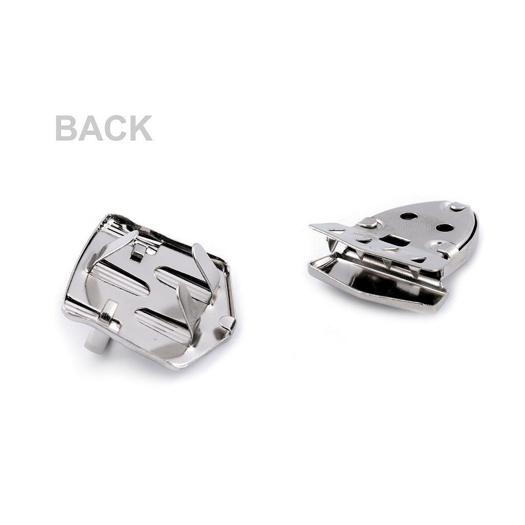 Klasické zapínání na kabelku či tašku se skládá ze tří dílů. Jeden díl se připevní na vnitřní část tašky, druhý (s nožkami) na vnější část a třetí díl na její chlopeň. Díl na chlopeň se upevní tak, že rozevřete čelisti, na kterých jsou zoubky a mezi ně vložíte materiál, na který chcete zapínání upevnit. Následně čelisti sevřete, zoubky tak zamezí pohybu látky.