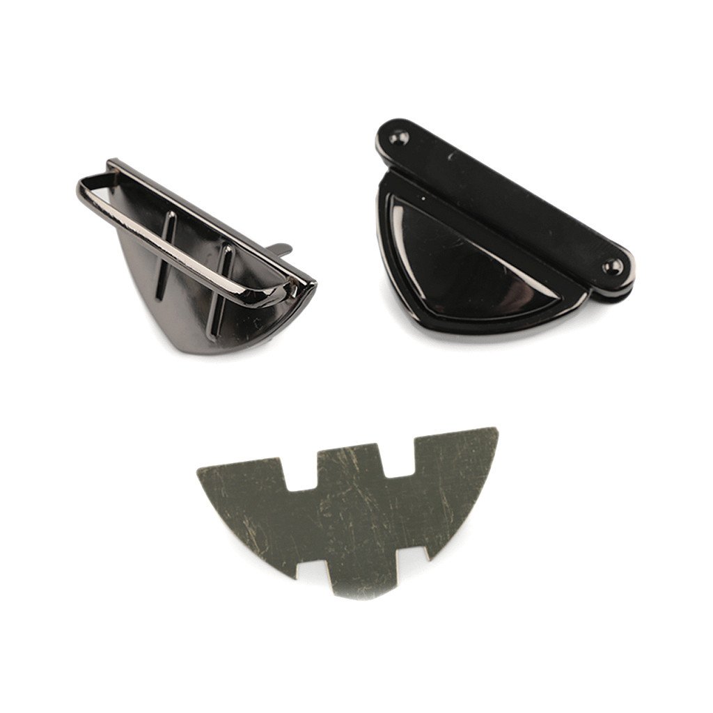 Klasické kovové zapínání využijete na tašku či kabelku. Skládá se ze tří dílů. Díl s nožičkami se připevní na vnější část. Nožky se zaháknou do druhého dílu, do plíšku, a roztáhnou. Třetí díl se zoubky se připevní na chlopeň tašky. Ten se upevní tak, že rozevřete čelisti, na kterých jsou zoubky, a mezi ně vložíte materiál, na který chcete zapínání upevnit. Následně čelisti sevřete, zoubky tak zamezí pohybu látky. Pak už jen stačí zasunout díly do sebe tak, až uslyšíte cvaknutí. Potom je teprve taška bezpečně uzavřena.
