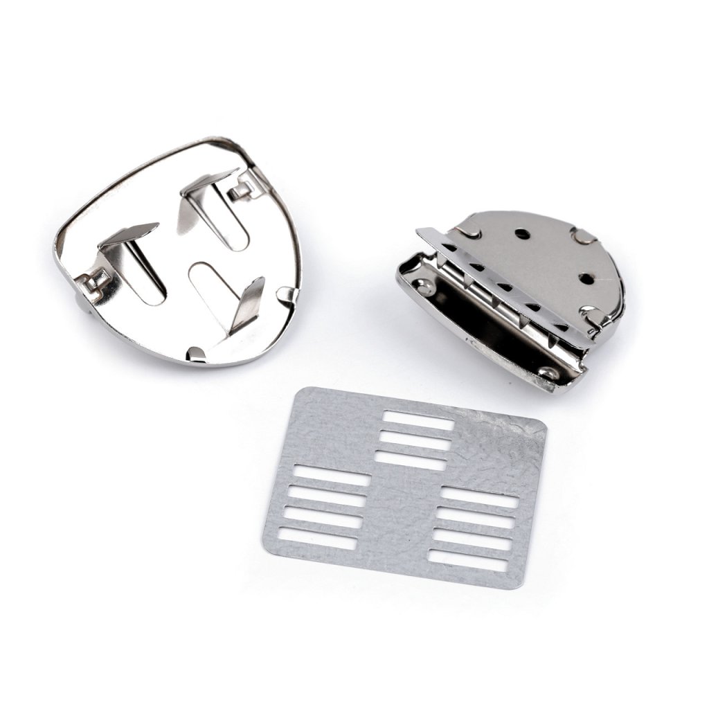 Klasické zapínání na kabelku či tašku se skládá ze tří dílů. Plíšek se připevní na vnitřní část tašky, díl s nožkami na vnější část (nožky se zaháknou do plíšku a roztáhnou) a třetí díl se zoubky na její chlopeň. Díl na chlopeň se upevní tak, že rozevřete čelisti, na kterých jsou zoubky a mezi ně vložíte materiál, na který chcete zapínání upevnit. Následně čelisti sevřete, zoubky tak zamezí pohybu látky.