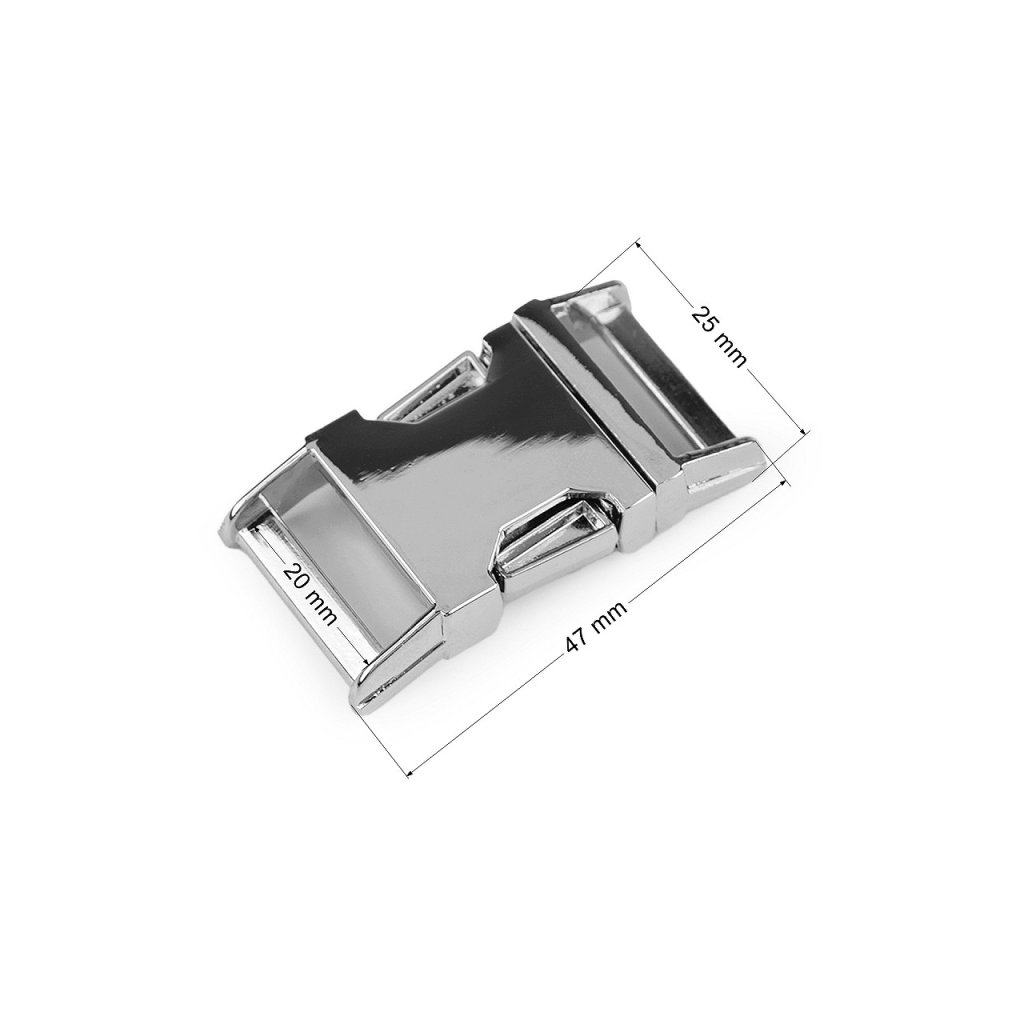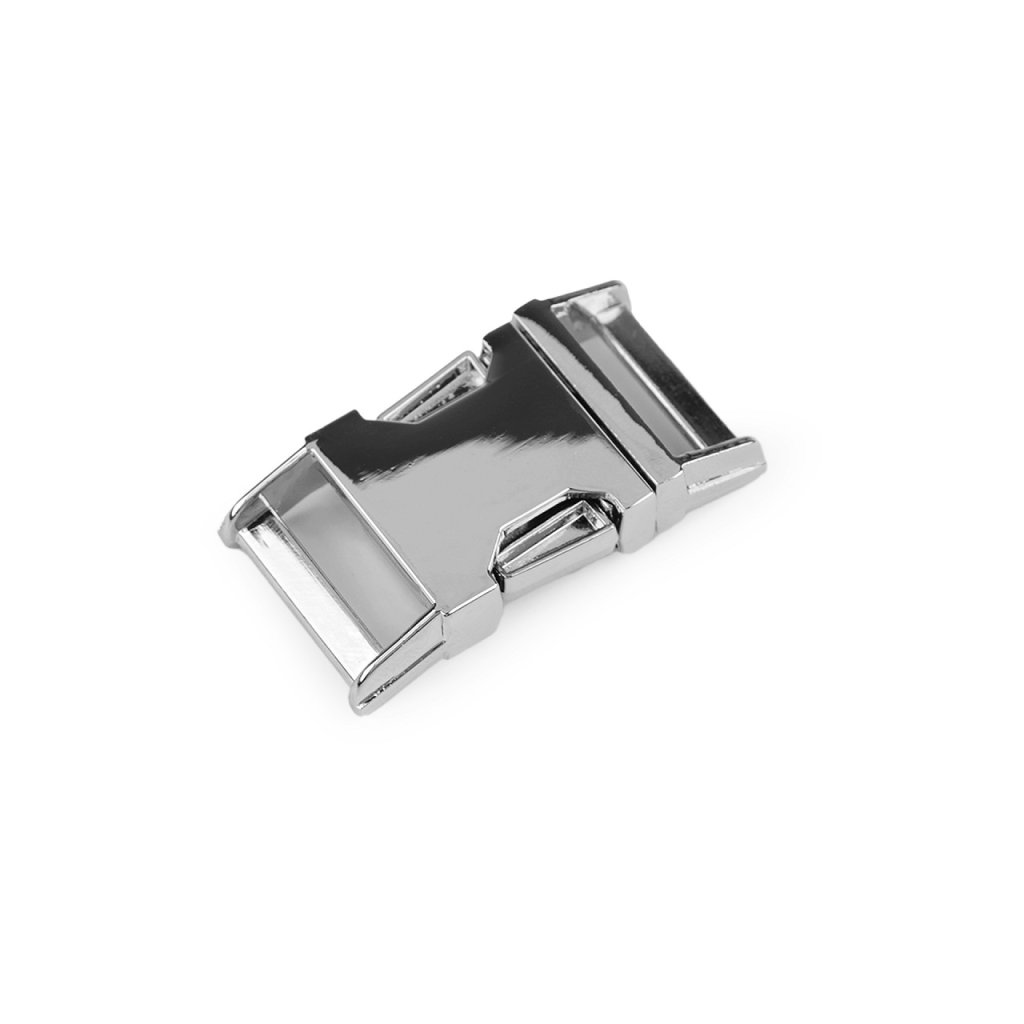 Celokovová spona je bytelná a pyšní se vysokým zrcadlovým leskem. Skládá se ze dvou částí, které do sebe zacvaknete. Využijete ji jako netradiční a elegantní zapínání lacláčů, ale také na výrobu ledvinkových opasků, brašen, batohů apod.