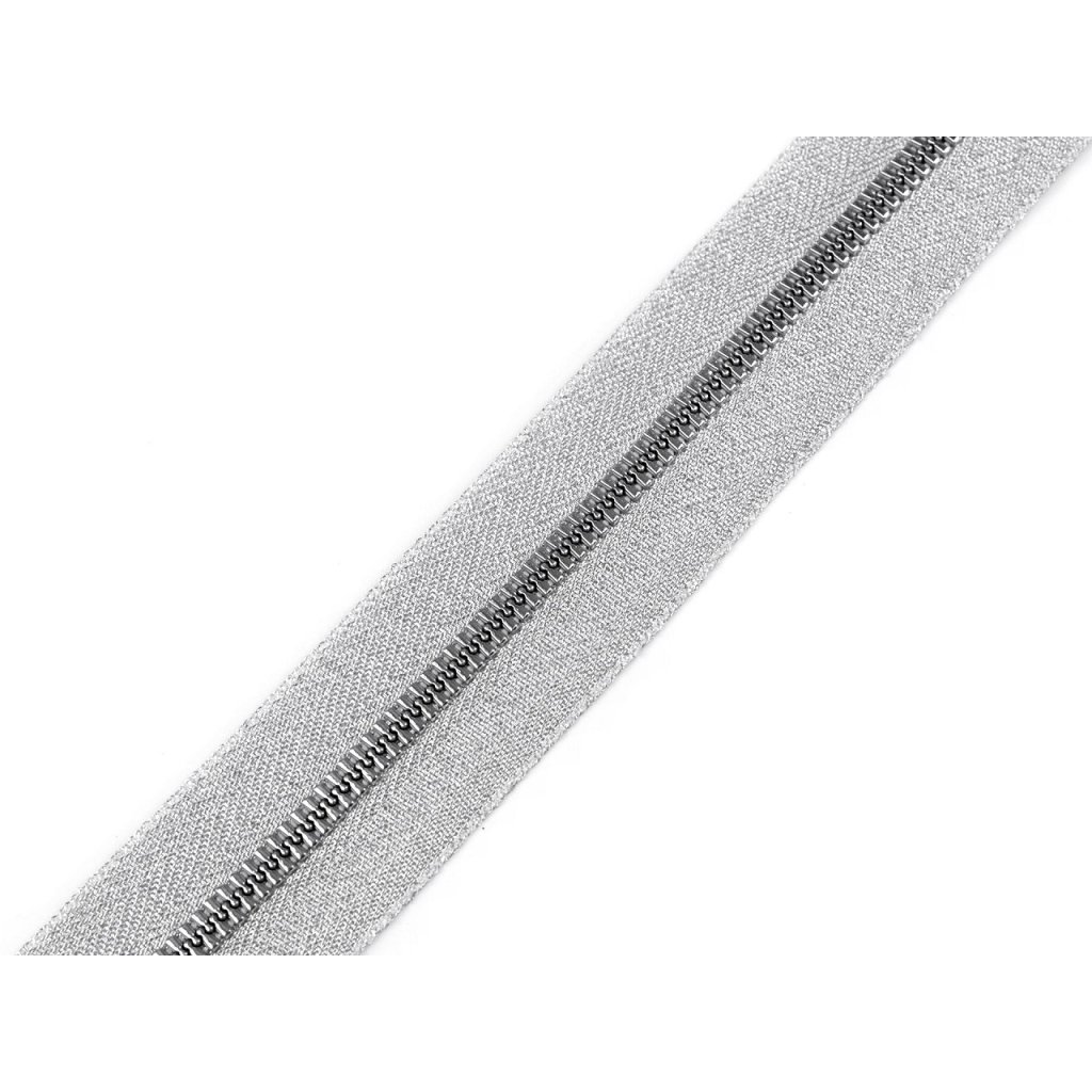 Metalický kostěný zip v metráži zajímavě a elegantně ozdobí kabáty, saka, bundy, mikiny. Nedoporučujeme ho na kabelky a tašky.