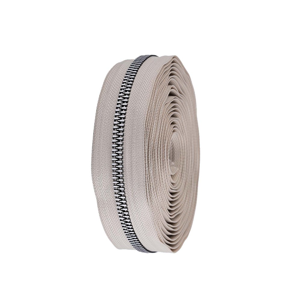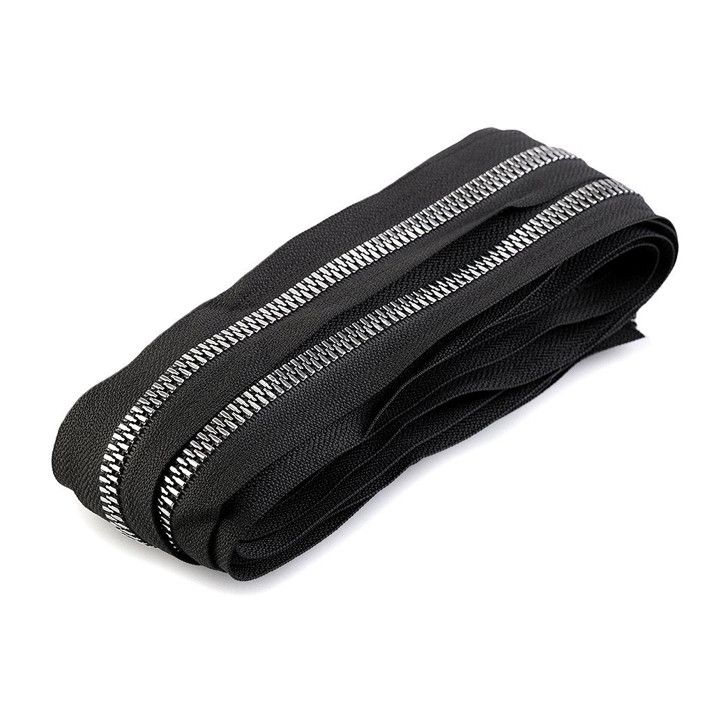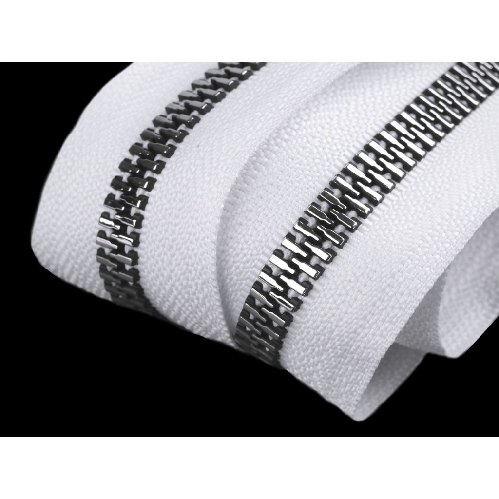 Kostěný zip v metráži má efektní stříbrné zoubky. Využijete ho na oděvy (mikiny, bundy, kabátky), kabelky, pouzdra nebo na výrobu zipových tašek.
