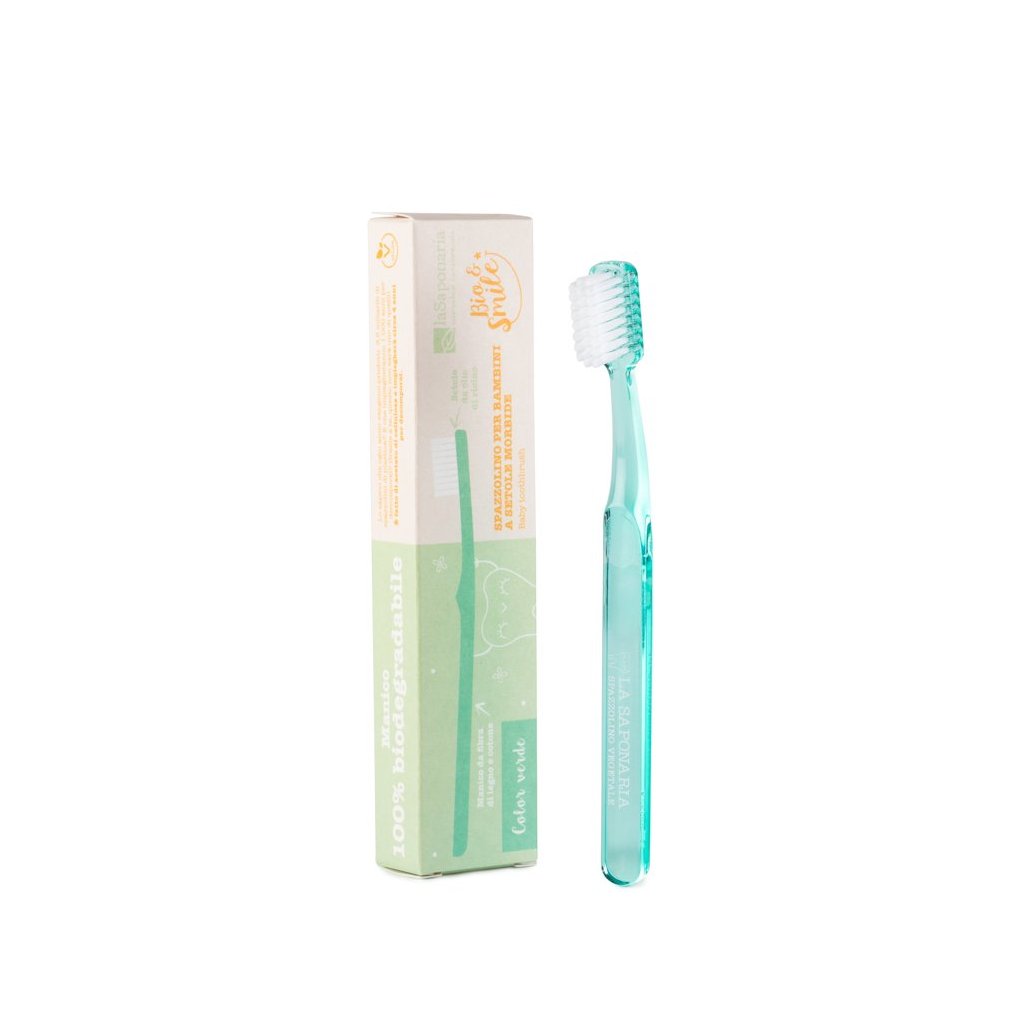 laSaponaria Dětský zubní kartáček - zelený - 100 % z přírodních materiálů