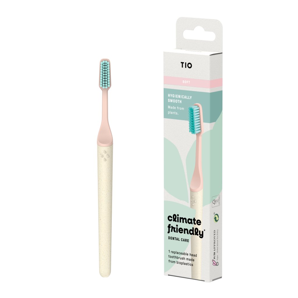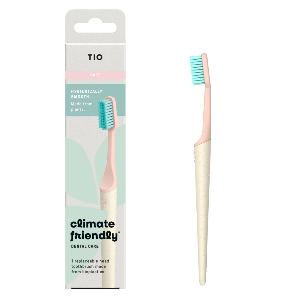 TIO přichází s inovovaným zubním kartáčkem TIOBRUSH, který je vyroben téměř výhradně z obnovitelných zdrojů. . Bez ropných složek - kartáčky jsou vyrobeny téměř kompletně z rostlinných polymerů - štětinky z ricinového oleje, hlavice z celulózových vláken s certifikací FSC a rukojeť z cukrové třtiny. . Štětinky laskavé k dásním - profil zaoblených štětinek TIO je založen na nejnovějších výzkumech a klinických studiích, aby se kartáček o vaše zuby postaral optimálně a nedráždil dásně. K dispozici je varianta SOFT s měkčími štětinkami a MEDIUM s tvrdšími. . Udržitelný design - kartáčky vás okouzlí nejen atraktivním zevnějškem, obalové materiály lze recyklovat a rukojeť zachovat a vyměňovat pouze náhradní hlavice. Tímto způsobem ušetříte cca 70 % odpadu ve srovnání s kompletní výměnou celého kartáčku. . Hygiena - vyměnitelná hlavice přesně přilne k rukojeti, díky tomu nedochází k množení bakterií. . Ergonomický tvar rukojeti - díky perfektnímu tvaru se kartáček skvěle drží v ruce. . Férová produkce - na rozdíl od bambusových kartáčků výroba TIOBRUSH probíhá v Německu - zaručuje férové ohodnocení a pracovní podmínky.