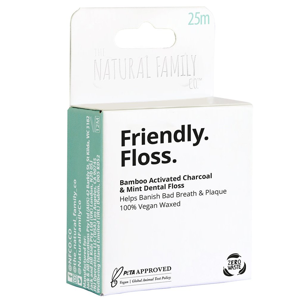 Zubní nit Friendly Floss je odolná a efektivní, je potažená kandelilovým voskem, což umožňuje snadnou aplikaci a zajišťuje, že nit plynule klouže mezi zuby. Je vyrobená z polyethylenu, bambusu, aktivního uhlí a máty. Tyto přírodní složky pomáhají odstraňovat zubní plak a zanechávají ve vašich ústech svěží dech. Místo nadbytečného plastového obalu vsadili v Jack n' Jill na papírovou krabičku, takže zbytečně nevytváříte problematický odpad.